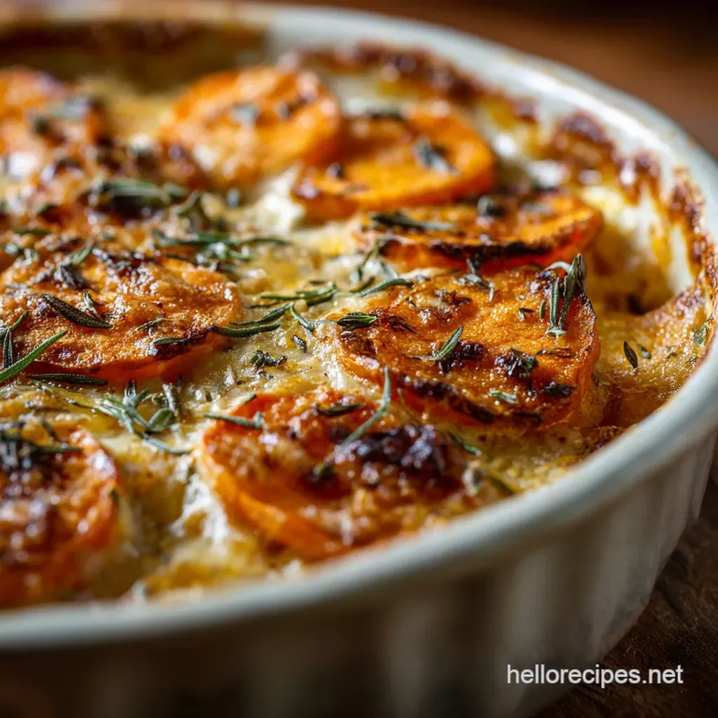 Sweet potatoes have a hearty, earthy sweetness that needs a strong aromatic partner, and let me tell you, rosemary and thyme are the power couple here. I insist on using fresh herbs because the essential oils release slowly into the cream as it bakes, infusing the entire dish with a deeply satisfying warmth.