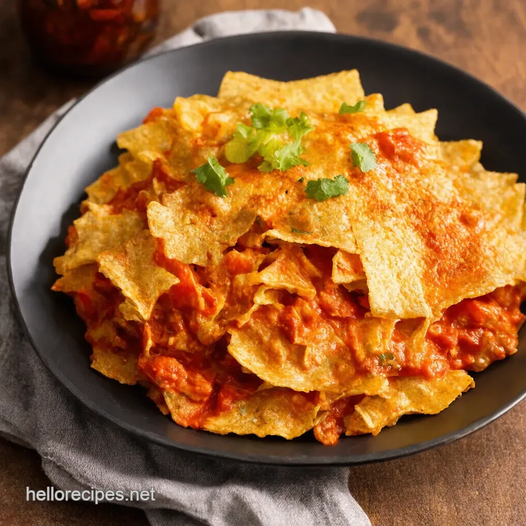Chilaquiles Rojos Crispy Tortilla Chips in Spicy Red Sauce