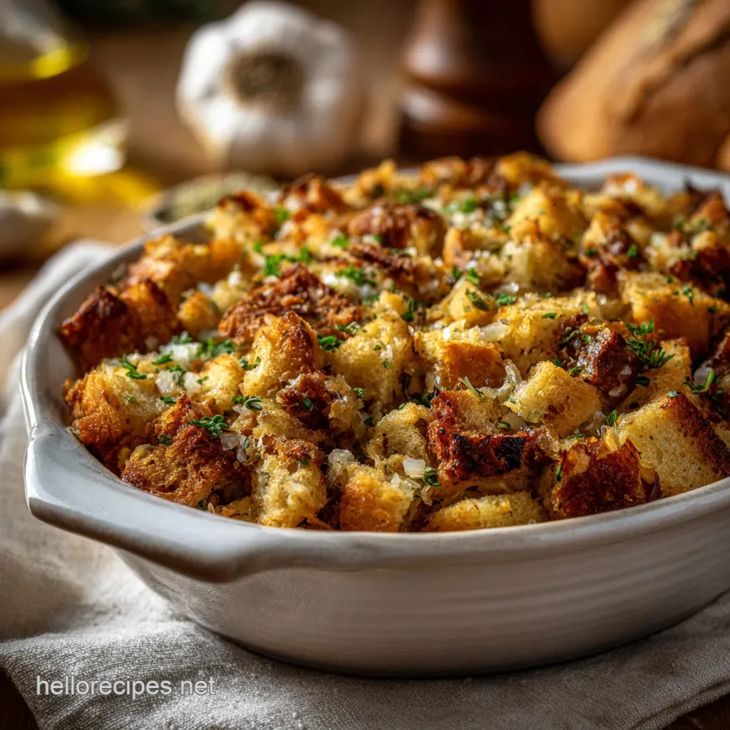 For a gluten-free adaptation, simply substitute the standard bread with an equal volume of sturdy, dried GF bread cubes. To make the recipe vegan, substitute the butter with high-quality olive oil or vegan butter sticks, and replace chicken broth with vegetable broth, omitting the egg binder entirely.