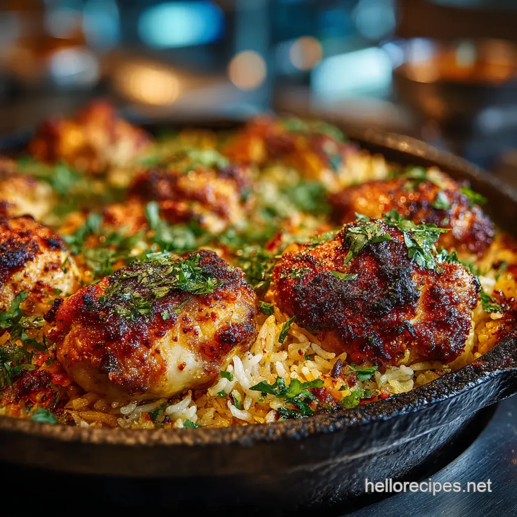 Presentation is key, innit? For plating, mound the Chicken Biryani high on a platter. Garnish with extra birista (those crispy fried onions).