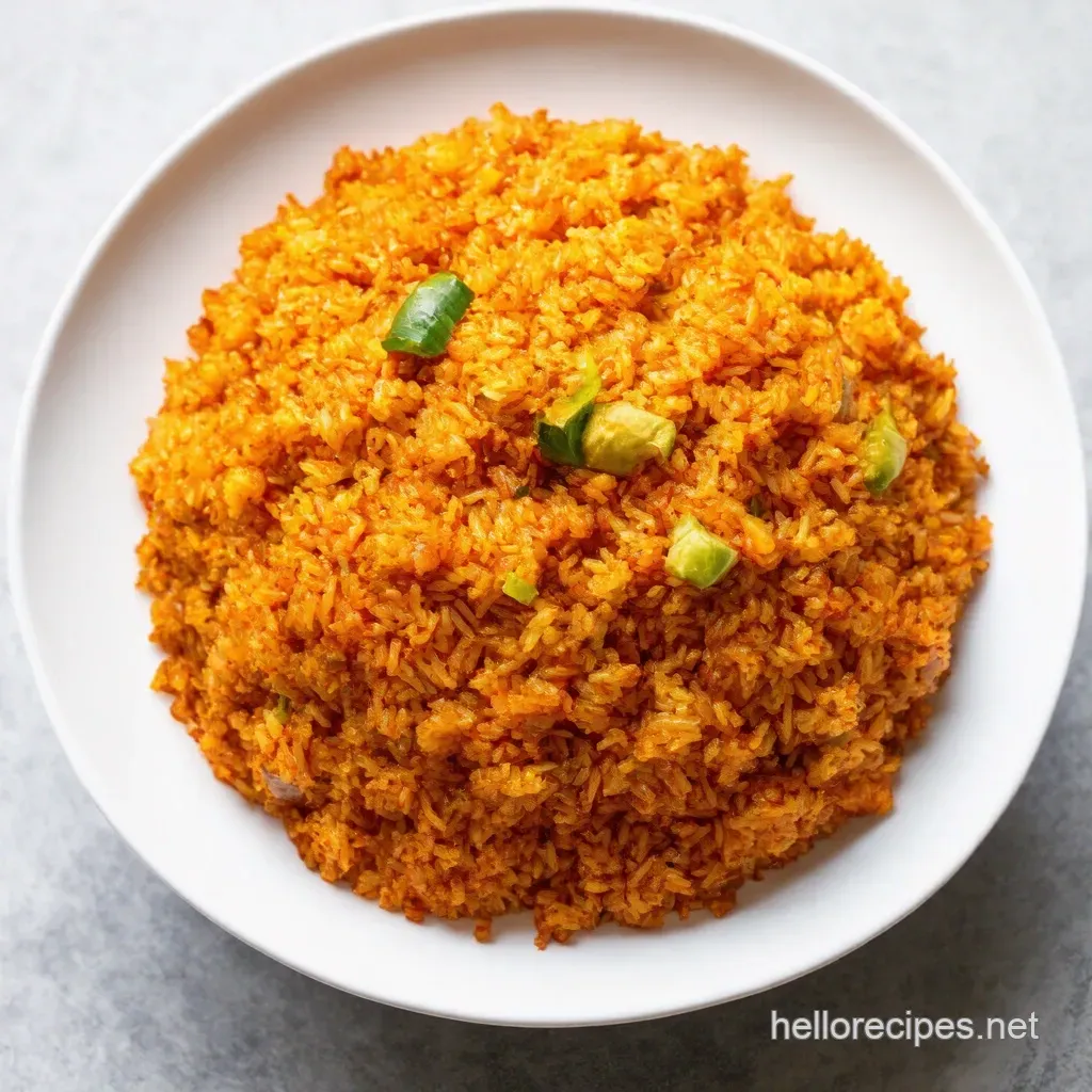 Presentation matters, innit? Think of it like this, you wouldn't wear your trackies to a wedding. For plating, mound that gorgeous jollof rice high! Garnish with a sprig of thyme or a few slices of bell pepper for a pop of colour.