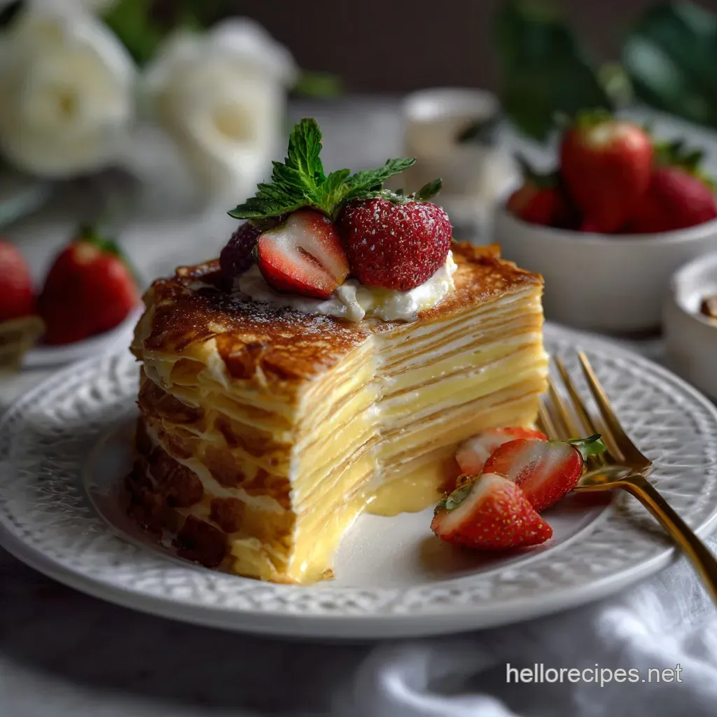 For a truly professional look, dust the top of your cake mille crepe with a thin layer of granulated sugar and use a kitchen torch to caramelize it right before serving. The "shatter" of the burnt sugar against the velvety cream is a sensory experience your guests won't forget.