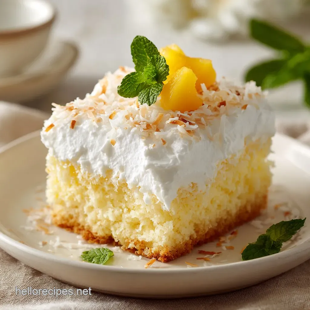 - Flavor/Texture Hook: A silky, melt in-your mouth crumb topped with a cloud of airy cream and toasted coconut shatter.