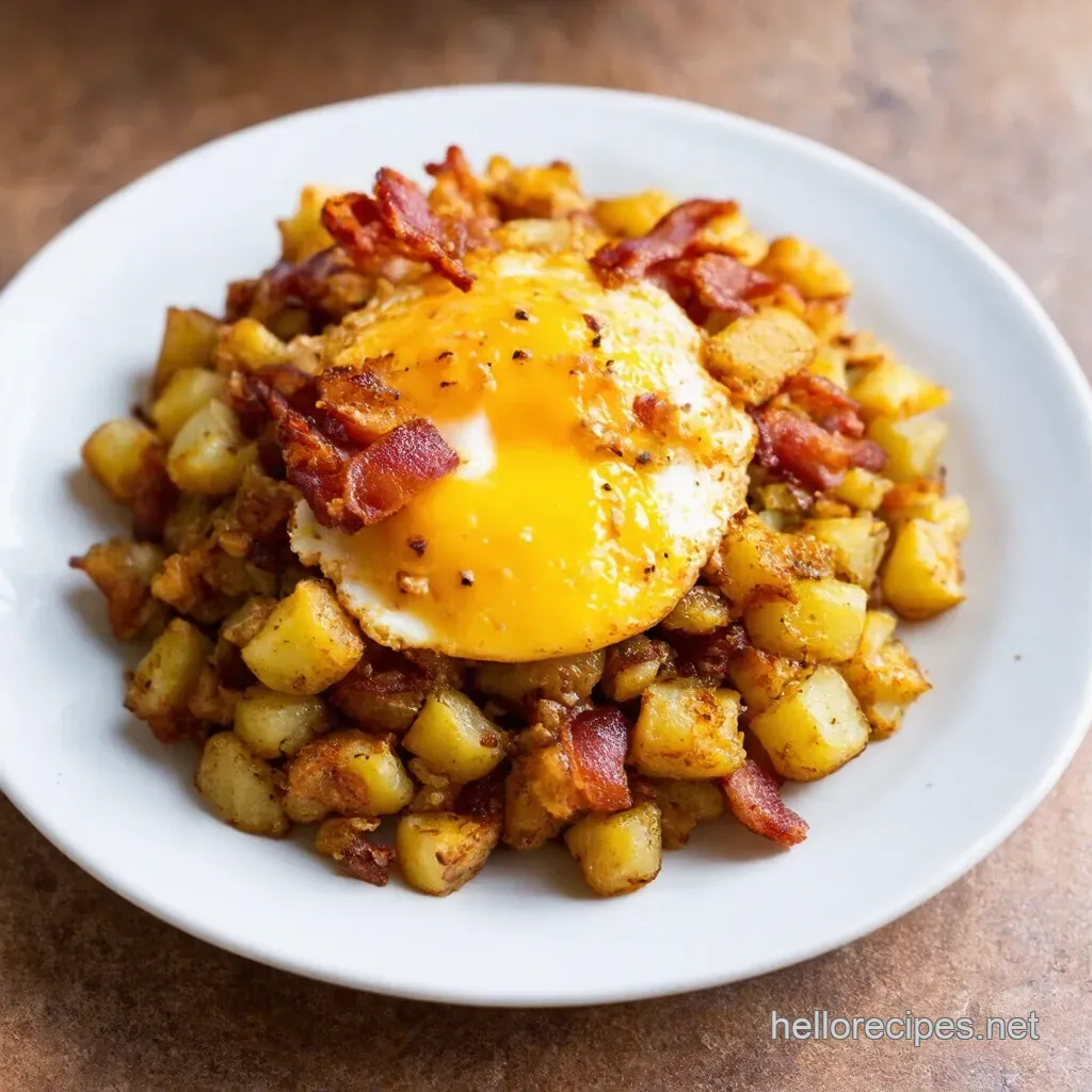 Proper Easy Bacon & Potato Breakfast Hash with a Sunny Side Up Egg