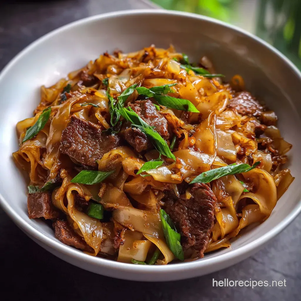 Garnish with a generous scattering of white pepper and sliced spring onions right before serving. Enjoy every silky, smoky strand of these amazing Flat Rice Noodles !