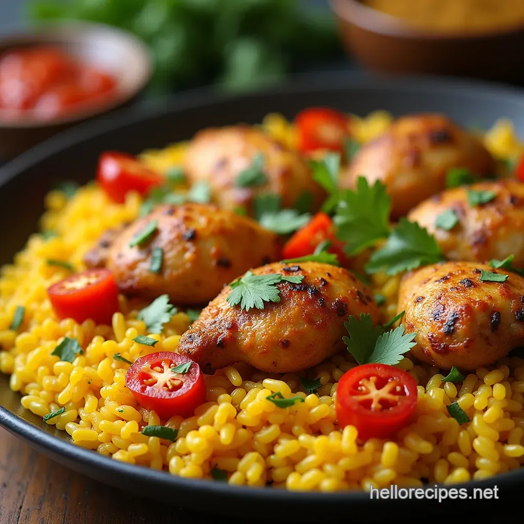 Garnish generously with freshly chopped parsley and serve immediately, presenting the entire pan at the table with bright lemon wedges, encouraging everyone to dig in for their portion of flavourful rice and tender chicken.