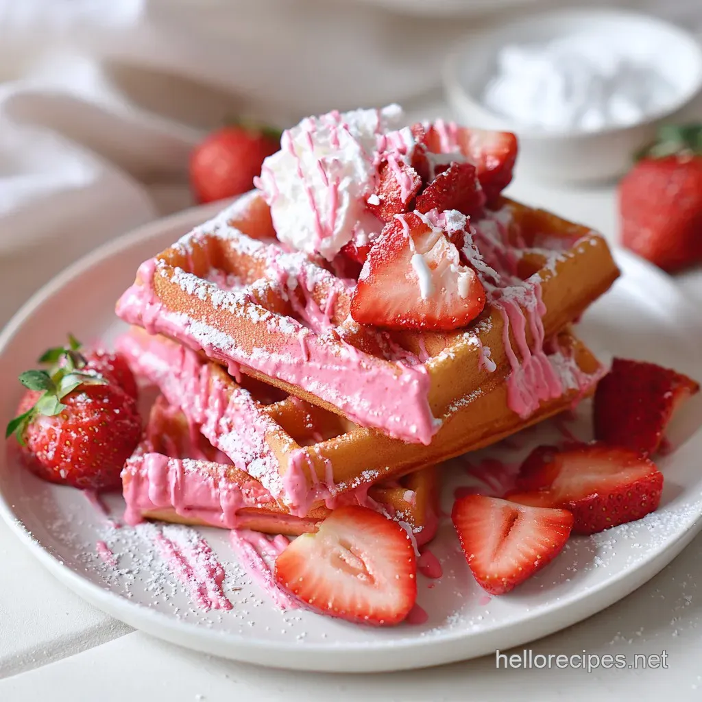 If you want the waffles themselves to look more "festive," you can take 2 tablespoons of the roasted strawberry juice and whisk it into the wet ingredients. It will tint the batter a soft, natural pink without the need for artificial dyes.